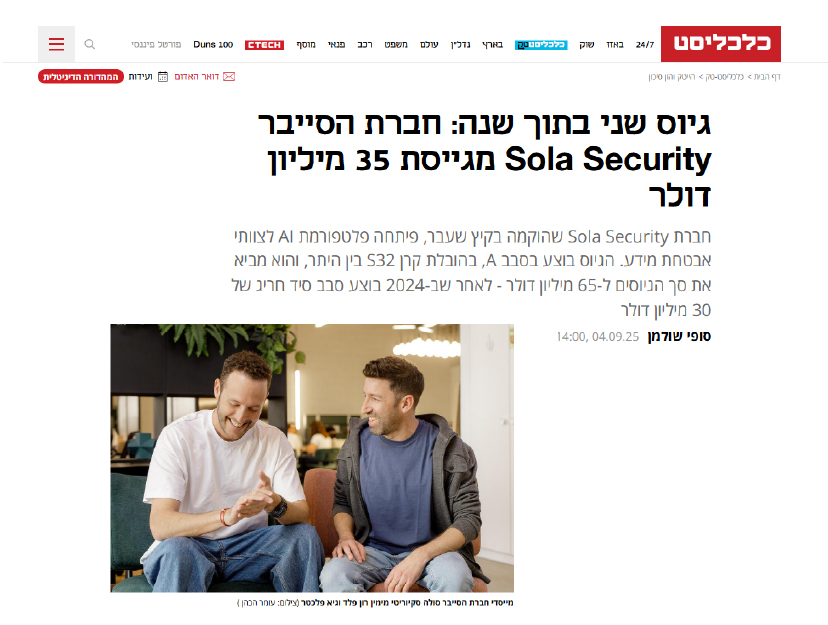 משרד בנאי עזריאל שטרן ייצג את חברת Cider Security בגיוס של 6 מיליון דולר במסגרת סיבוב Seed בהובלת Glilot Capital.